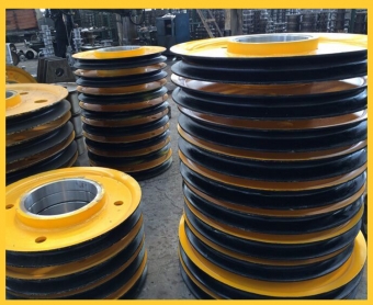在香蕉视频黄色下载的起升机构中,滑轮起着省力和支撑钢丝绳并为其导向的作用。对于轻、中型工作类型的桥式香蕉视频黄色下载的滑轮可用灰铸铁HT15-33和球墨铸铁QT-10制造;对于重级以上工作类型的桥式香蕉视频黄色下载的滑轮,可用铸钢ZG25或ZG35制造。对于大直径(D>800mm)的滑轮可用碳钢Q235-A焊接。
